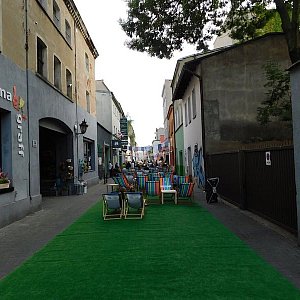 Zwyczajna ulica Zielona, za sprawą kilku stolików i krzeseł, obrazów rozstawionych na sztalaguch i lawendy, zmieniła się w urokliwy zakątek miasta.