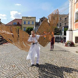 Młodzież z przytwierdzonymi do ramion wielkimi skrzydłami zorganizowała performance na leszczyńskim Rynku. Był to efekt wspólnego projektu Miejskiego Biura Wystaw Artystycznych i Młodzieżowego Centrum Profilaktyki Alternatywa. W przedsięwzięcie zaangażował się artysta Jędrzej Stępak.