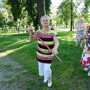 W cieniu parkowych drzew odbyła się próba tańca członków Stowarzyszenia Wygraj Siebie. Mieszkańcy Leszna efekty wielogodzinnych treningów obejrzą we wrześniu, w czasie Aktywnego Obywatelskiego Leszna.