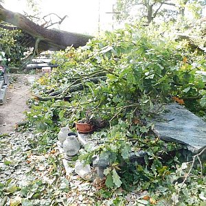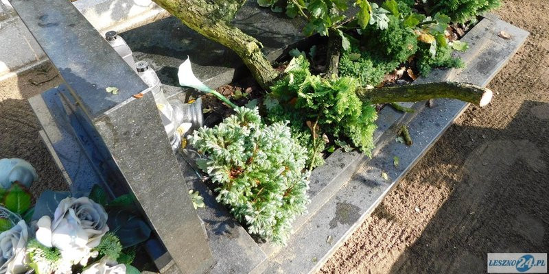 Wichura złamała potężne drzewo, które runęło na nagrobki. Zniszczenia są ogromne.