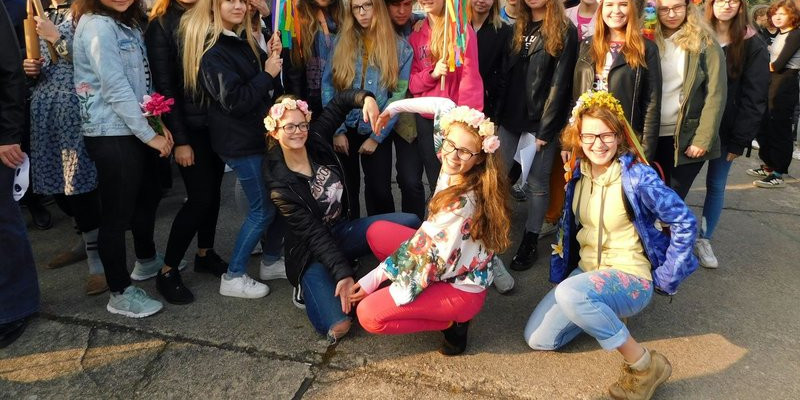 W ramach zabawy uczniowie przygotowali transparenty, a klasy się poprzebierały.