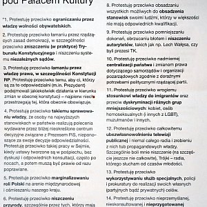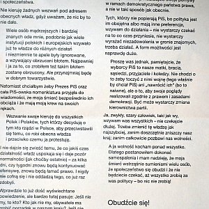 Piotr Szczęsny (rodzina zezwoliła na podanie jego nazwiska) przed dokonaniem samospalenia pozostawił list. Przed pomnikiem z łzami w oczach odczytała go Adriana Machowiak z leszczyńskiego KOD-u.