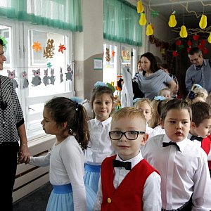 Na początku bohaterów uroczystości - dzieci z grupy Skrzaciki, ich rodziców i dziadków, powitała dyrektor Karolina Silczak. Zaprosiła do obejrzenia części artystycznej w wykonaniu przedszkolaków z grupy Zajączki.