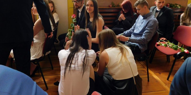 Uroczystość odbyła się w auli liceum. Jeszcze przed jej rozpoczęciem, niektórzy uczniowie podchodzili do nauczycieli, by szczególnie podziękować za opiekę przez minione trzy lata.