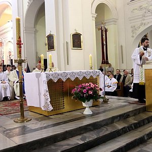 Obchody rozpoczęto mszą świętą w leszczyńskiej bazylice. Jak zwykle prowadził ją ks. proboszcz Jan Majchrzak, wielki nasz patriota, potrafiący, jak rzadko kto, zachęcać ludzi do myślenia i działania w duchu poszanowania tradycji i miłości do Ojczyzny. Kazanie, również przepełnione treściami patriotycznymi wygłosił ks. Patryk Nachaczewski.