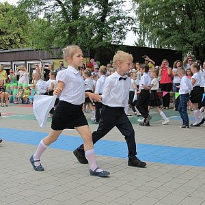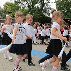 Uroczystość rozpoczęła się odtańczeniem poloneza przez odchodzących przedszkolaków. Po nich zaprezentowali się koledzy i koleżanki z młodszych grup. Wreszcie nastał czas podziękowań i pożegnań tak z dziećmi, jak i ich rodzicami.