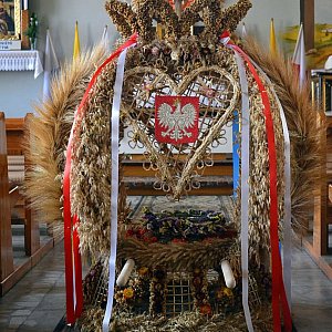 Świętowanie rozpoczęto od porannej mszy świętej, na której nie mogło zabraknąć tradycyjnego wieńca. W tym roku nawiązywał do 100. rocznicy odzyskania niepodległości.