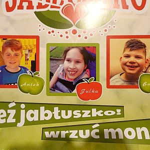 Jabłuszko to publiczna zbiórka do puszek. W tym roku potrwa pięć dni, od 17 do 21 października. Pomoc otrzyma sześcioro niepełnosprawnych dzieci: Szymon, Zuzia, Amelka, Antek, Julka i Bartek.