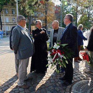 Pod pomnikiem uczestnicy uroczystości oddali hołd ludziom Solidarności składając wiązanki kwiatów i znicze.
