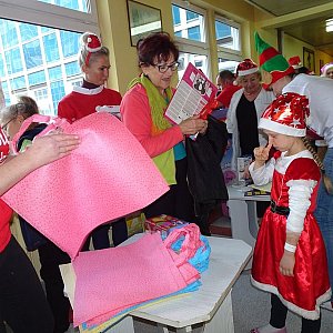 Do prezentów dołączone były kartki z życzeniami, wykonane własnoręcznie przez uczestników warsztatów Leszczyńskiego Banku Żywności.