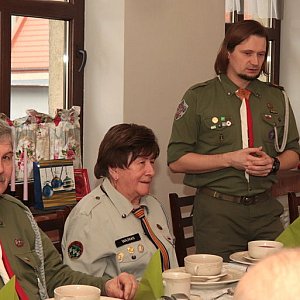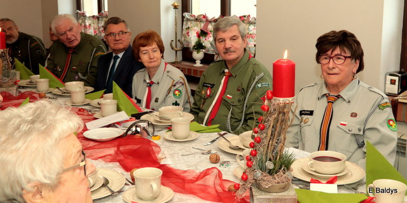 Przy stole w Pierogarni "Cela pod różą" zasiedli również goście: Tomasz Malepszy - przewodniczący Rady Miejskiej i hm. Paweł Napieralski - przewodniczący Wlkp. Rady Harcerskich Seniorów, hm. Rafał Maćkowiak - komendant Hufca ZHP Leszno, hm. Barbara Król - członek prezydium Wlkp. Rady Harcerskich Seniorów i hm. Tomasz Żurek - przewodniczący Stowarzyszenia Przyjaciół Harcerstwa Hufca ZHP Leszno.