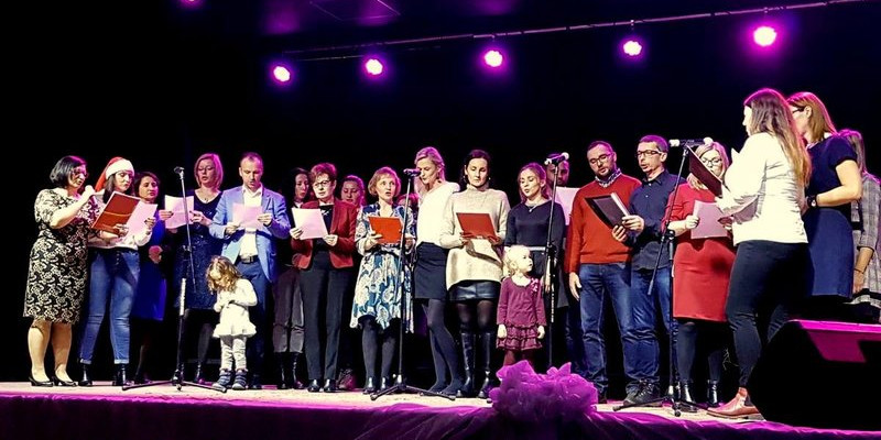 Po przewie, w czasie ktorej można było odwiedzić kiermasz świąteczny i skosztować pysznych pierników, na scenie pojawili się uczniowie klas I-V. Wspólnie z nauczycielami i rodzicami, śpiewali polskie kolędy i pastorałki.