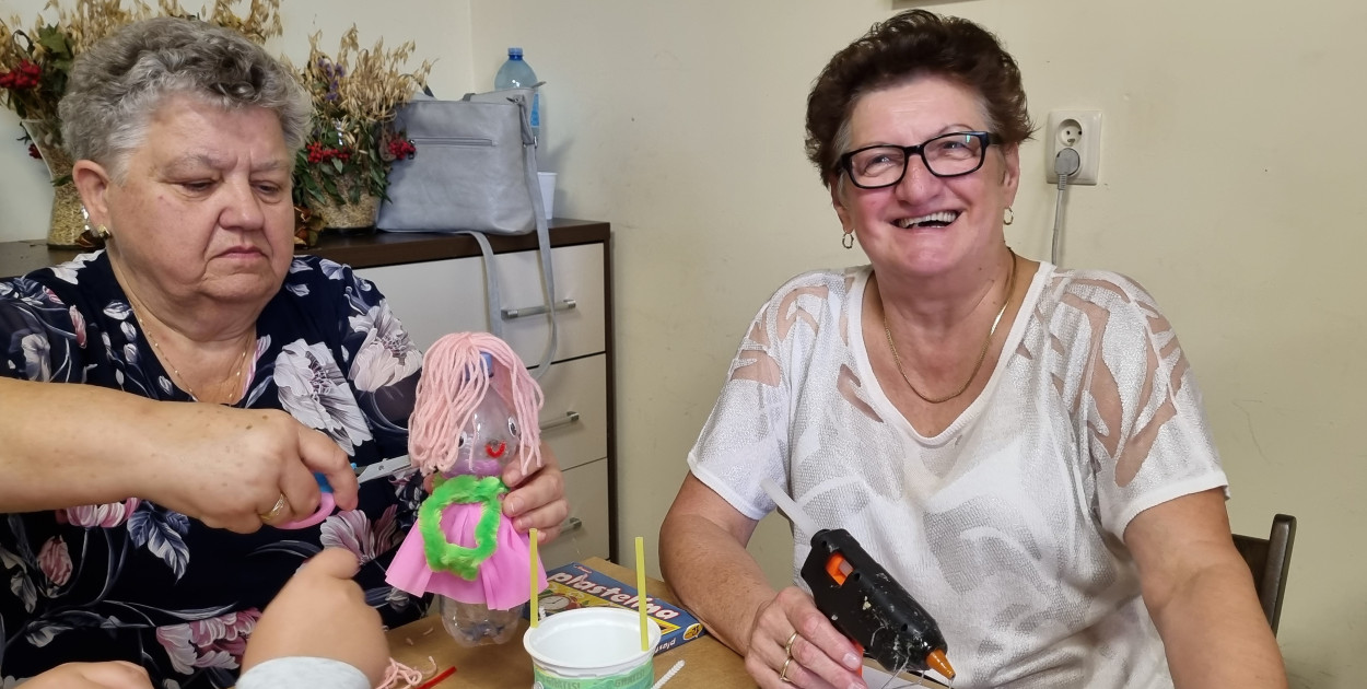 Chwilę po wejściu do siedziby fundacji, wszyscy wzięli się do twórczej pracy. W zajęciach wykorzystano opakowania po produktach spożywczych, co miało przełożenie na edukację związaną z segregacją odpadów. Prace, które wspólnie tworzyli seniorzy i ich goście zostały równorzędnie docenione.