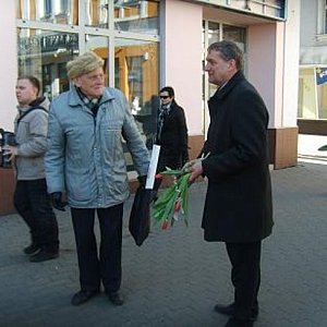 Tyle kwiatów rozdał poseł Wiesław Szczepański na rynku w Lesznie z okazji Dnia Kobiet. Parlamentarzysta SLD tłumaczył, że ich kolor nie jest przypadkowy - nawiązuje przecież do barw lewicy. Panie sympatycznie reagowały na gest posła nie żałując mu miłych słów i podziękowań. Do każdego tulipana dołączona była karteczka z życzeniami.