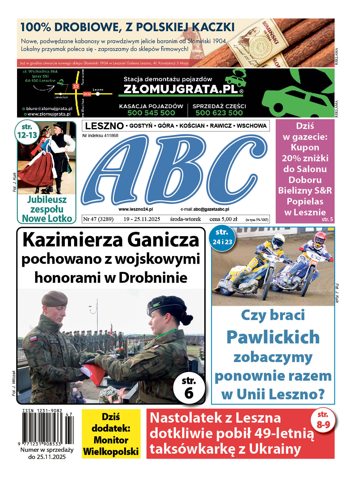 Do aktualnego wydania gazety "ABC" dołączyliśmy drugą gazetę - Monitor Wielkopolski, wydawany przez Urząd Marszałkowski w Poznaniu. Obie gazety to aż 40 stron