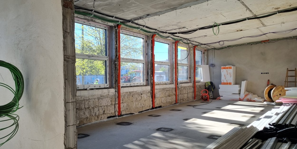 - Zakończyliśmy montaż stolarki okiennej zewnętrznej. Trwa wykonywanie tynków oraz jastrychów cementowych. Rozpoczęliśmy prace związane z wykończeniem wnętrz - montaż zabudów gipsowo-kartonowej, szpachlowanie ścian oraz malowanie istniejących, betonowych belek dachowych. Roboty elektryczne i sanitarne na bieżąco postępują przed pracami budowlanymi - informuje Tomasz Biernat z firmy Adamietz, kierownik budowy.