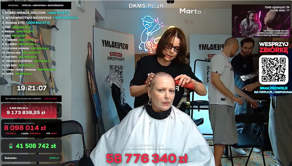 Podczas streamingu łączą się z nimi różne osoby, w tym znane - aktorzy, piosenkarze, był też Robert Lewandowski i robią różne rzeczy, np.rapują. W tym czasie ludzie wpłacają pieniądze. Hitem jest jednak pozbywanie się włosów. W czasie, gdy pisaliśmy ten artykuł, robiła to Kasia Nosowska, a jej fryzjerką była Agata Kulesza. Panie dokonywały dzieła, a licznik pokazujący zebraną kwotę szalał.