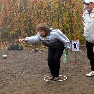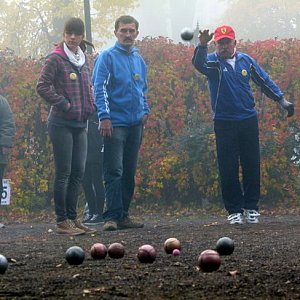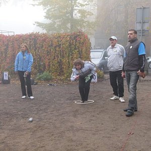 Bardzo mglisty poranek nie jest przeszkodą do rozegrywania III Turnieju o Puchar Starosty Leszczyńskiego w Petangue, w kategorii dubletów.
