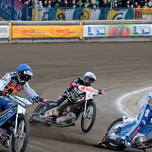 Doszło zatem to powtórki wydarzeń z Wrocławia. Tam także "Byki" wygrywały przed dycydującymi starciami. W XIV pojedynku dnia zwyciężył znakomity Jarek Hampel, ale drugi jechał Piotr Pawlicki, co dawało leszczynianom minimum remis w meczu. Niestety, nasz junior popełnił błąd na ostatnim wirażu i dał się wyprzedzić Aleksandrowi Loktajewowi. Tym samym przed ostatnią odsłoną przewaga Fogo Unii stopniała do 2 punktów. Hampel i Piotr Protasiewicz świetnie rozegrali start i pierwszy łuk, pewnie dowożąc do mety podwójne zwycięstwo na wagę dwóch meczowych punktów. Trzeci był Przemek Pawlicki, a do mety nie dojechał ten, który miał przechylać szalę zwycięstw na korzyść leszczynian, czyli Nicki Pedersen.