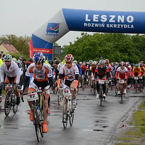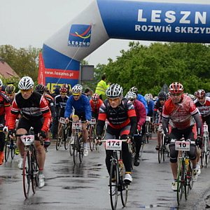 Mocno lunęło tuż przed startem IX Leszczyńskiego Maratonu Rowerowego, ale nie zawróciło to z linii startu dzielnych cyklistów. W nagrodę mieli blisko trzy godziny bezdeszczowej pogody.
