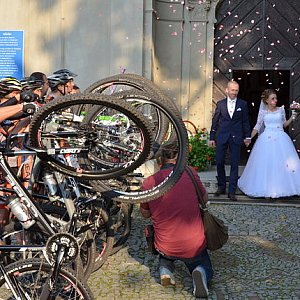 Spora grupa leszczyńskich kolarzy podjechała w piątkowe popołudnie pod osiecki klasztor, aby utworzyć szpaler, kiedy ze świątyni wychodzili już jako małżeństwo Kasia i Marek Konwa.