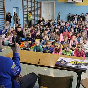 Krzysztof Kasprzak był w poniedziałek gościem uczniów Szkoły Podstawowej nr 3 w Lesznie. Przez ponad godzinę odpowiadał w szkolenej auli na liczne pytania swoich małych fanów.