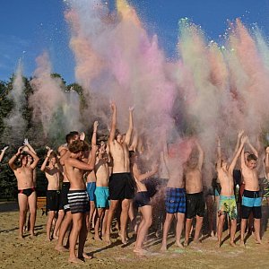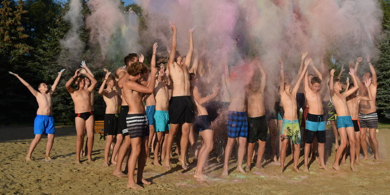 Młodzież mieszkała na terenie Hotelu Trzy Jeziora i aktywnie korzystała ze sprzętu wodnego.