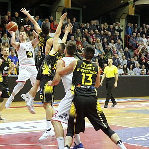 Początek spotkania absolutnie nie zapowiadał takiej wygranej gospodarzy. Nadkomplet publiczności obawiał się w ogóle o zwycięstwo. W pierwszych 10 minutach podopieczni Łukasza Grudniewskiego grali bowiem słabo. Notowali liczne straty, a do tego byli bardzo nieskuteczni. Szybko się jednak przebudzili i na początku drugiej kwarty zagrali koncertowo. Zdobyli 18 punktów z rzędu, a rywale żadnego. Odrobili zatem wszystkie straty i wyszli na prowadzenie. Do przerwy było 33:29 dla Polonii.