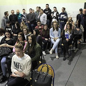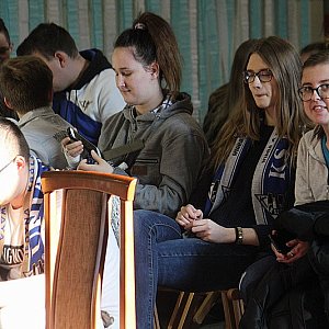 Po spotkaniu z przedszkolakami zawodnicy odwiedzili Zespół Szkół nr 4 w Lesznie. Tam spotkali się ze znacznie starszymi fanami "czarnego sportu". Najpierw obejrzeli wspólnie z młodzieżą film podsumowujący miniony sezon, a później chętnie odpowiadali na pytania, a także pozowali do zdjęć. Towarzyszyła im klubowa maskotka, czyli byczek.
