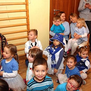 W stroje smerfów o klubowych barwach biało-niebieskich ubrali się: Piotr Baron - Papą Smerfem, Szymon Szlauderbach - Ważniakiem, Bartek Smektała - Łasuchem, Janusz Kołodzie - Marudą, a w roli Lalusia wystąpił Dominik Kubera. Uzupełniała ich Liwia Mikołajczak która była Gargamelem, Hogatą była Katarzyna Nowak, Beata Szmigiel wcielila się w Smerfetkę, a Elwira Gorynia w Sasetkę.