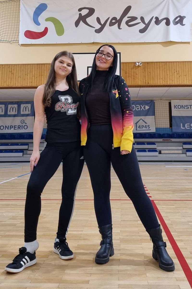 Na zdjęciu Amelia Łysiak z Marceliną Bott, trenerką Speed Stars Cheerleaders Rydzyna, który działa przy Rydzyńskim