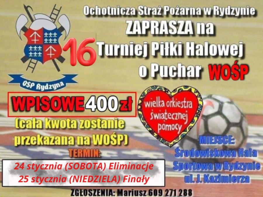 Czas tak szybko płynie, że aż trudno uwierzyć, ale małymi krokami zbliża się Turniej Piłki Halowej o Puchar Wielkiej Orkiestry Świątecznej Pomocy w Rydzynie. Organizatorzy zbierają zgłoszenia od drużyn, które chciałyby zmierzyć się z innymi ekipami.