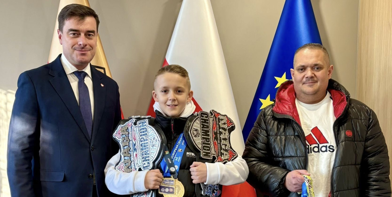 chłopiec i jego ojciec Denis niedawno spotkali się z prezydentem miasta Leszna Grzegorzem Rusieckim. Zostali przez niego zaproszeni do jego gabinetu. Prezydent pogratulował chłopcu sukcesów i miał okazję zobaczyć niektóre z przyniesionych przez Tysona i jego tatę trofeów 12-latka, w tym te ostatnie - za zdobycie tytułu mistrza świata i mistrza Europy w muay thai. Bo chłopiec w mijającym roku skupił się na tajskim boksie.