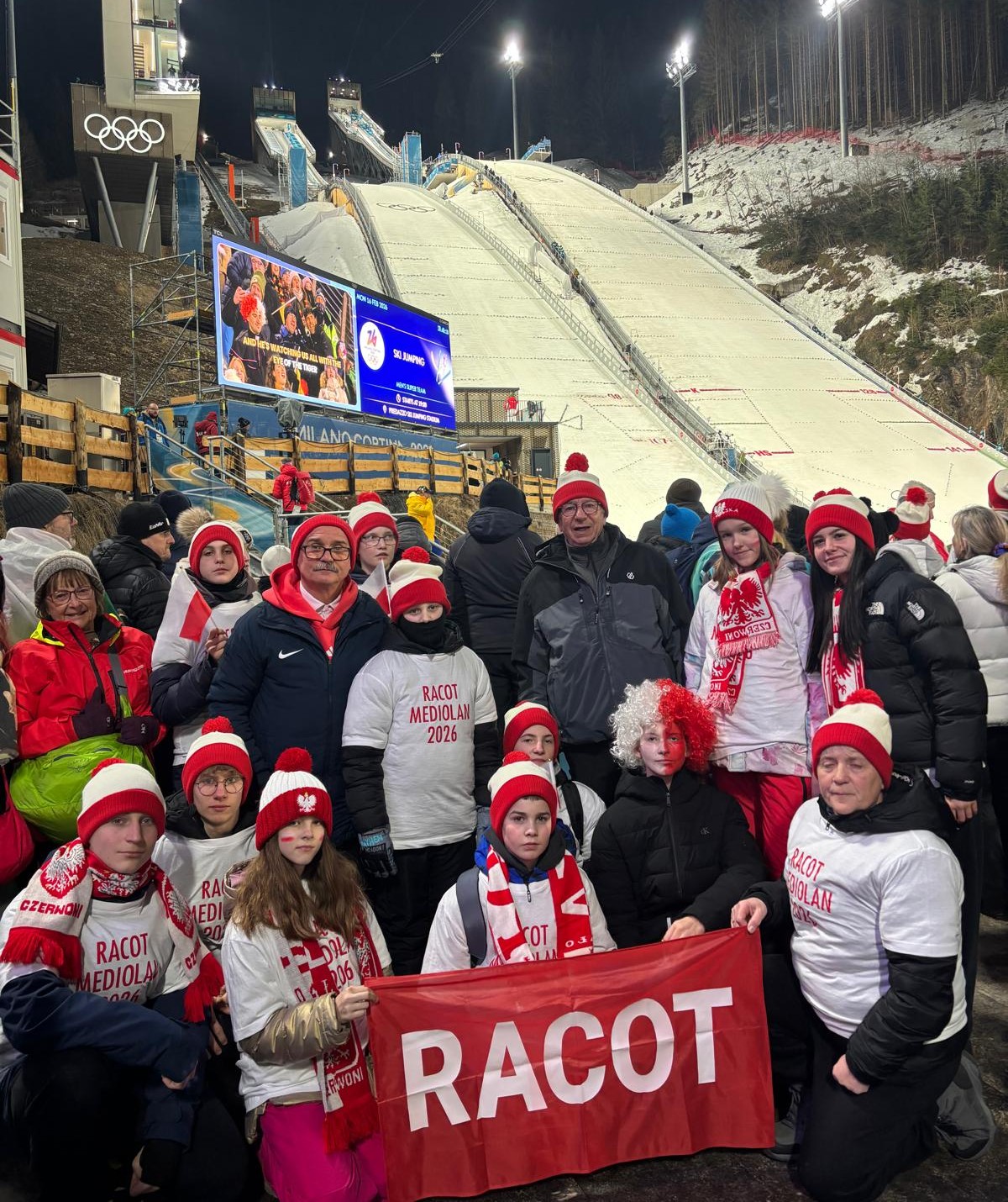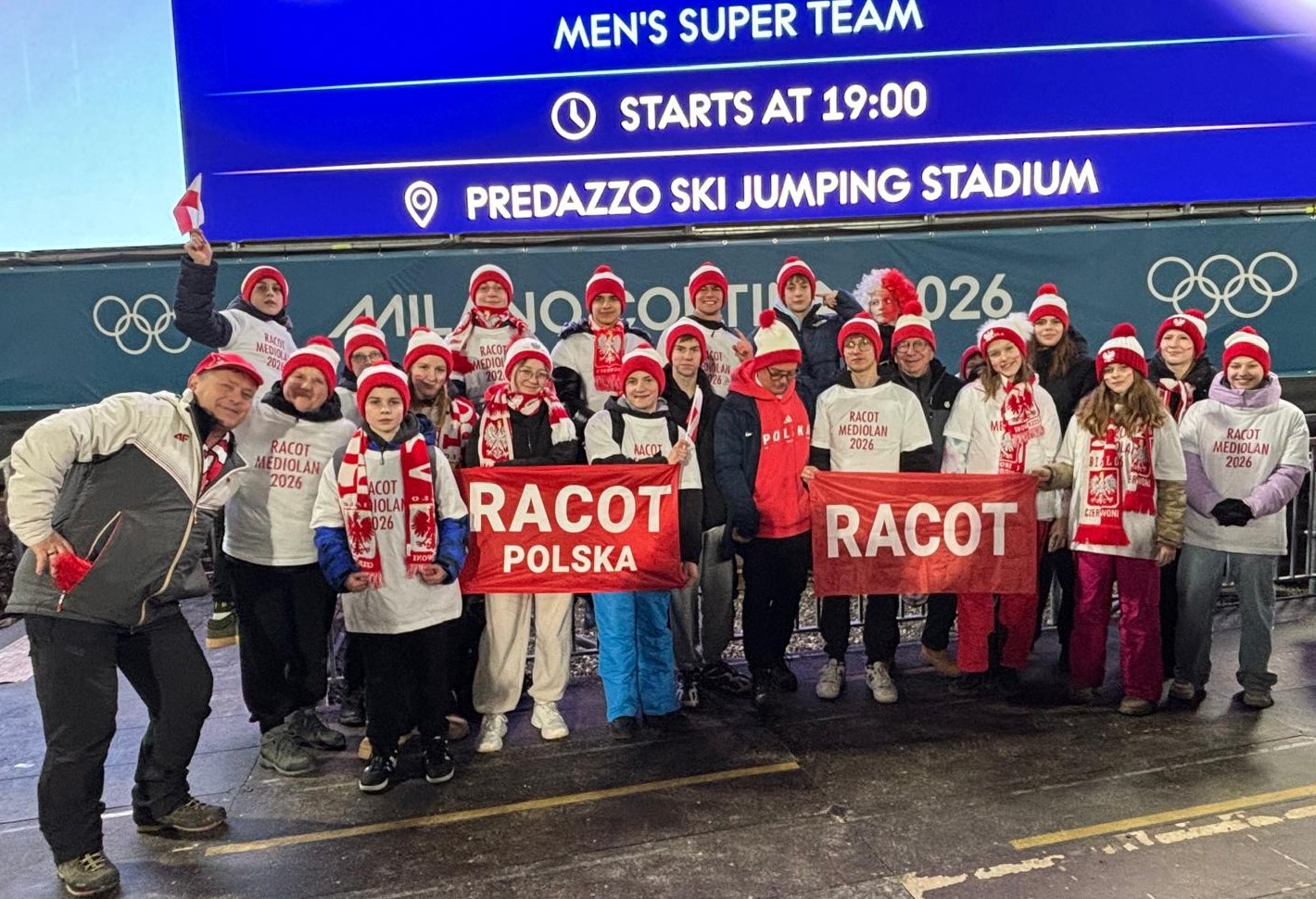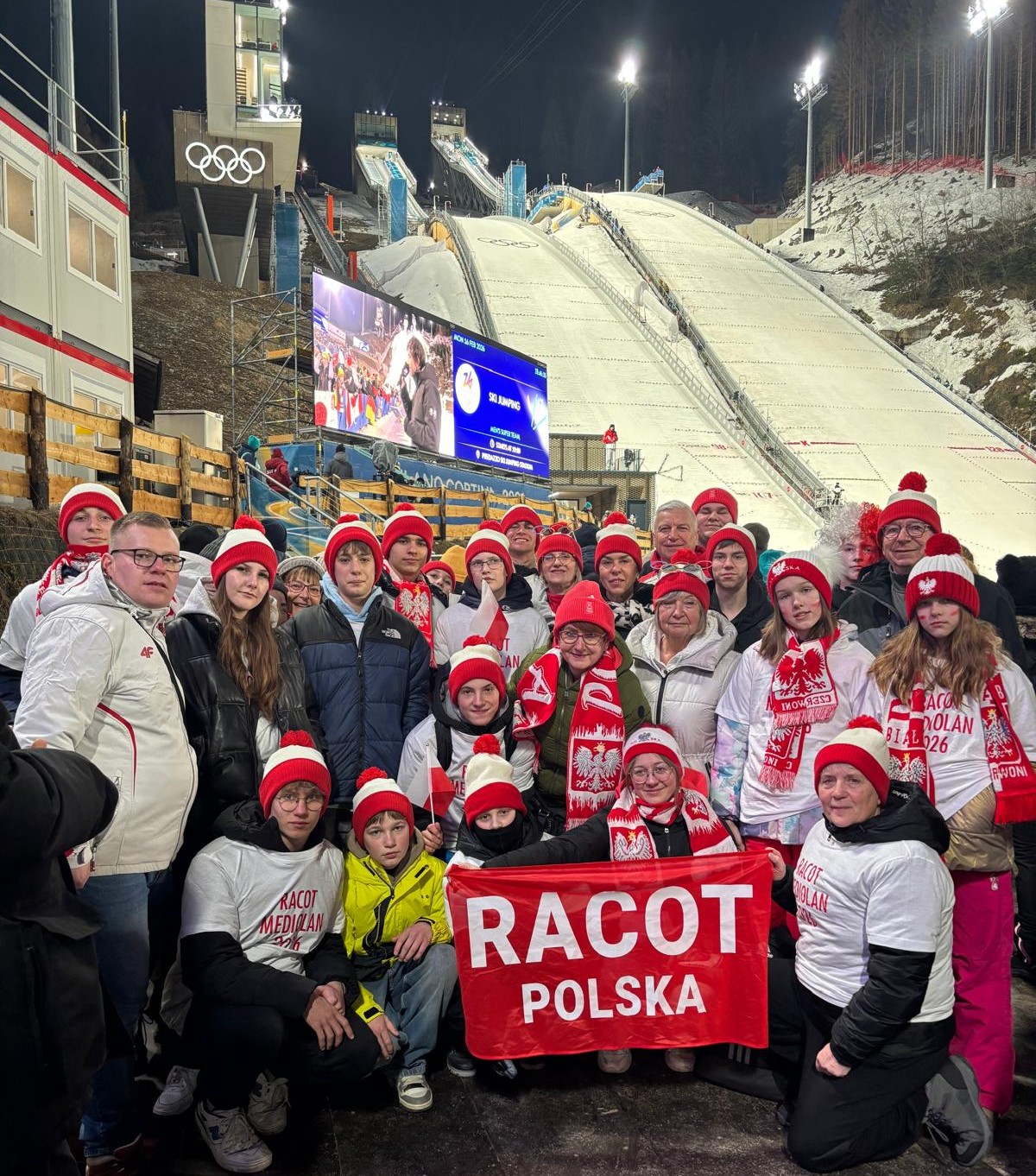 Kibice z Racotu kibicowali w poniedziałek, 16 lutego polskim skoczkom narciarskim na Igrzyskach Olimpijskich we Włoszech. Mieli szczęście na żywo obserwować walkę o medale naszego męskiego duetu Paweł Wąsek i Kacper Tomasiak.