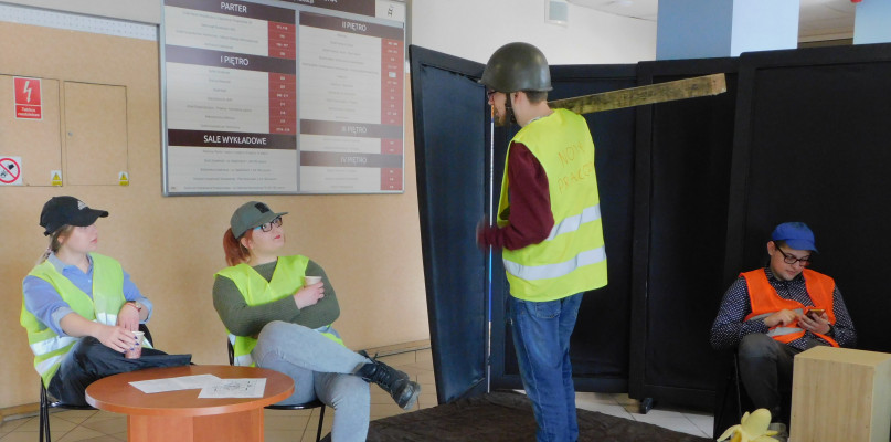 Dzisiaj aktorzy Grupy Teatralnej LeŻak zmienili hol uczelni w scenę, na której wystawiają scenki o ciężkiej pracy robotników budowy i trudach życia studenta. Trzecia etiuda została zatytułowana "Top wykładowca". Ponadto zorganizowano zabawy teatralne z udziałem widzów.