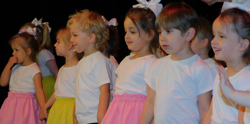 Na scenie pojawiły się dzieci z grup Pszczółki, Słoneczka, Motylki i Biedronki. Tańczyły i śpiewały. Każdy występ zbierał gromkie brawa zachwyconych, a może chwilami wzruszonych rodziców.