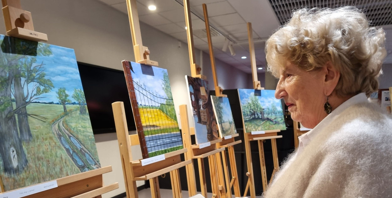 - Jak co roku pojechałyśmy na plener, tym razem nasz instruktor Włodzimierz Pietrzyk zadał nam zadanie malowania obrazów, na których widać horyzont. Drugim zadaniem było malowanie wnętrz pałacu. Trzy dni szybko przeminęły - na otwarciu wystawy wspominała Elżbieta Szykulska, starościna sekcji plastycznej.