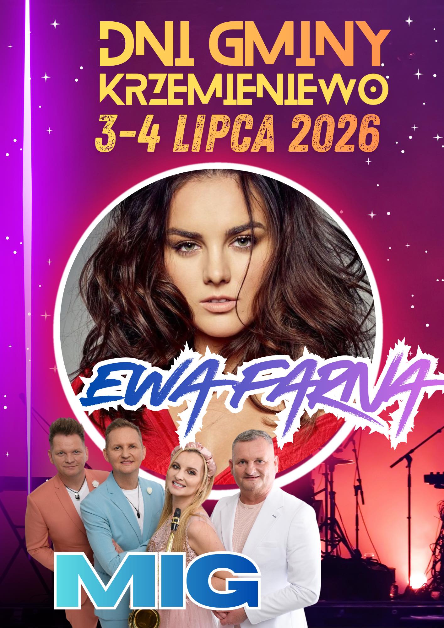 Odbędą się 3 i 4 lipca 2026 roku na boisku sportowym w Krzemieniewie. Na scenie pojawią się: Ewa Farna oraz zespół disco polo MIG.