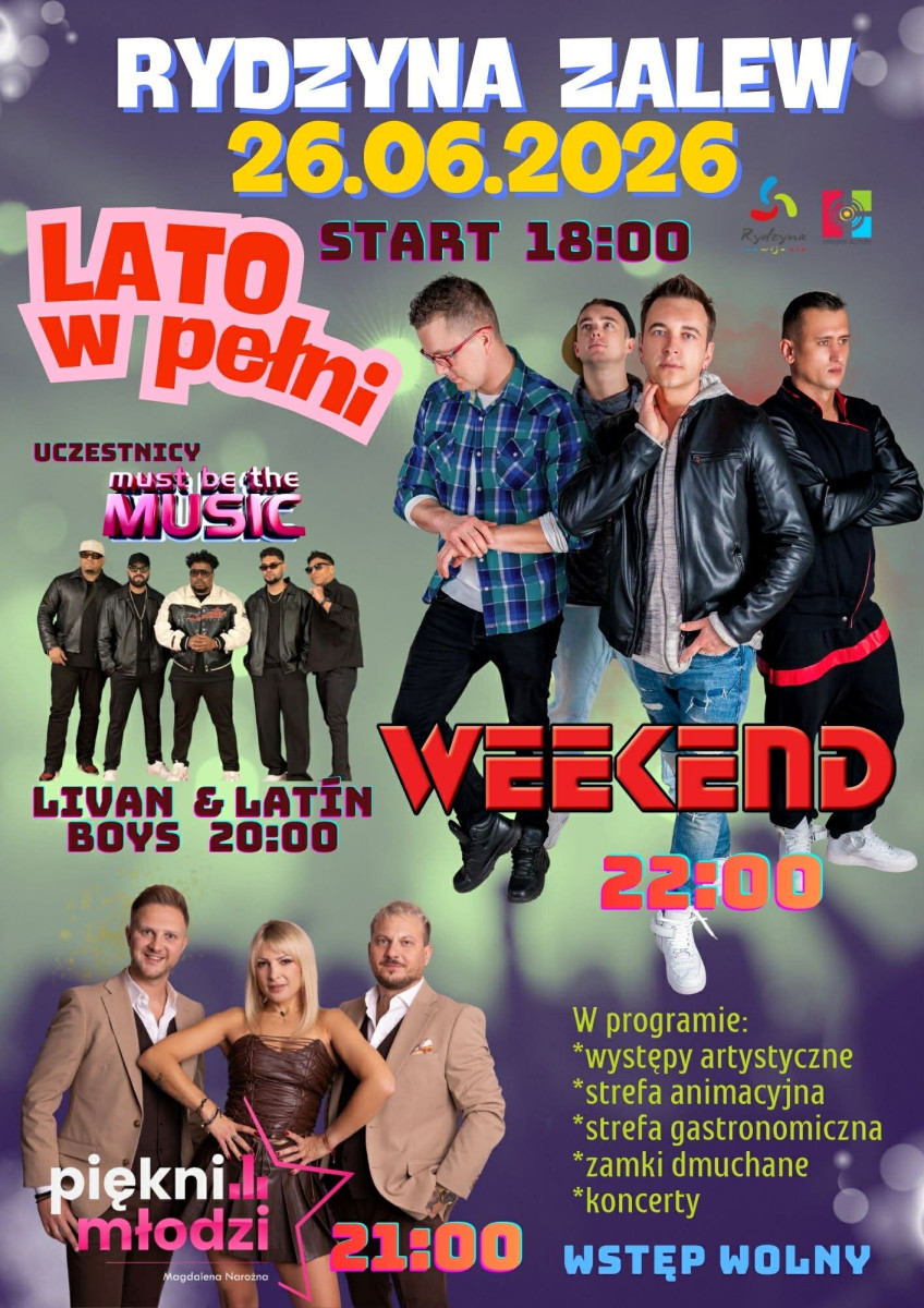- Dla publiczności przygotowaliśmy wieczór pełen hitów, pozytywnej energii i atrakcji dla całej rodziny. 26 czerwca zapraszamy do Rydzyny mieszkańców całego regionu - mówi Magdalena Szymańska-Pietrzak, dyrektorka Rydzyńskiego Ośrodka Kultury.