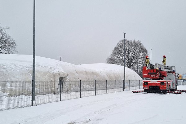 26.11.2025 Balon nad lodowiskiem w Lesznie zapadł się pod śniegiem