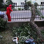 Po godz. 16 na skutek silnego wiatru najpierw oparło się o budynek, a później runęło na ziemię, zrywając linię energetyczną.