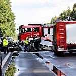 W czwartek po godz 18 doszło do tragicznego wypadku na drodze nr 5 z Leszna do Rydzyny. Zderzyły się dwa samochody - bmw i land rover. Tym pierwszym podróżowały dwie osoby - 39 latek z Wrocławia i 28-latek z powiatu sanockiego. Nie żyją. Z land rovera wyciągnięto 39-letniego mieszkańca powiatu rawickiego. Jest w szpitalu.