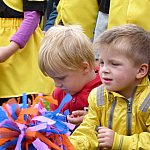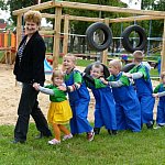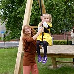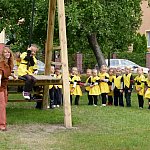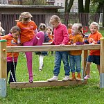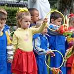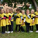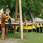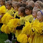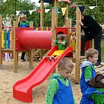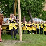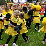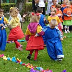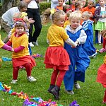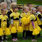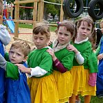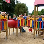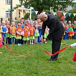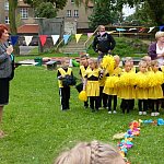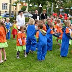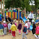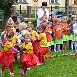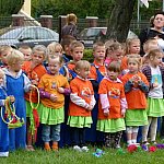 Przedszkolacy z "Bajkowej Krainy" (Przedszkole Miejskie nr 20 w Lesznie) wystąpiły dzisiaj dla swoich gości, którzy przybyli na otwarcie nowego placu zabaw.