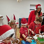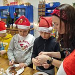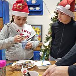 4 grudnia 2025 roku uczniowie Szkoły Podstawowej w Dąbczu wzięli udział w warsztatach zdobienie pierników upieczonych przez panie z miejscowego Koła Gospodyń Wiejskich.