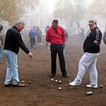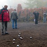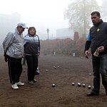 Bardzo mglisty poranek nie jest przeszkodą do rozegrywania III Turnieju o Puchar Starosty Leszczyńskiego w Petangue, w kategorii dubletów.