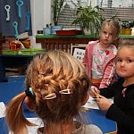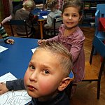 Dzieci z Przedszkola Miejskiego nr 20 w Lesznie uczyły się dziś, jak uczesać włosy na zabawę andrzejkową.