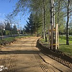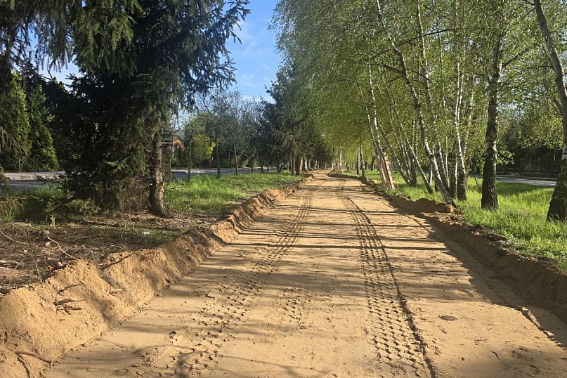 W Lesznie powstaje nowa ścieżka pieszo-rowerowa od Ronda Gronowo do skrzyżowania z ulicą Juranda, wzdłuż ulicy Poznańskiej. Na zdjęciach stan prac na 26 kwietnia 2026 roku.