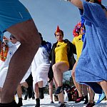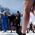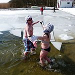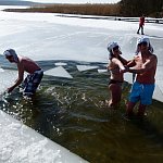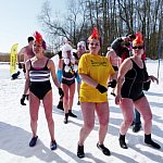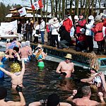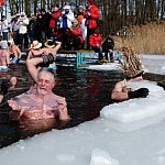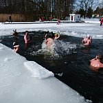 Ponad 70 miłośników kąpieli w lodowatej wodzie skorzystało z zaproszenia Leszczyńskiego Klubu Morsów "Yeti" i wzięło udział w zorganizowanym już po raz trzeci w Boszkowie "Ratowaniu Marzanny".