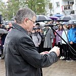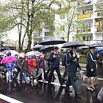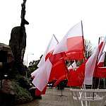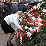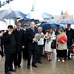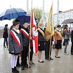 W strugach deszczy świętowano w Lesznie 222 rocznicę uchwalenia Konstytucji 3 Maja. Mimo złej pogody pod pomnik przyszło sporo osób, w tym młodzież ze wszystkich szkół oraz zuchy i harcerze.