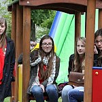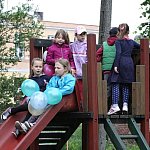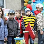 Plac zabaw przy Oddziale Przedszkolnym Szkoły Podstawowej nr 9 w Lesznie, był miejscem festynu rodzinnego pt."Mamo tato pobaw się z nami".